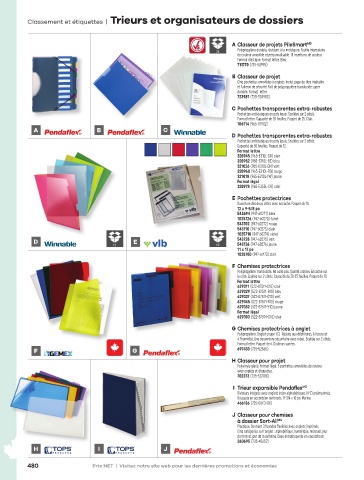 25 Polypropylène durable, résistant à la moisissure. Feuille intercalaire Manille. Onglet renforcé coupé droit. Fibre postconsommation : 10 %.