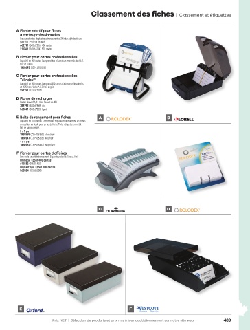 Onglets préimprimés A - Z et sujets. Fibre postconsommation : 10 %. F Fichier pour cartes d’affaires